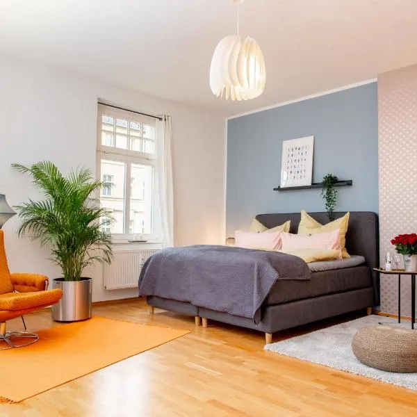 Located in Chemnitz, 600 metres from Chemnitz Central Station, Ferienwohnungen in der Kunstgalerie Charlie und Jenny features rooms with inner courtyard views and free WiFi.
