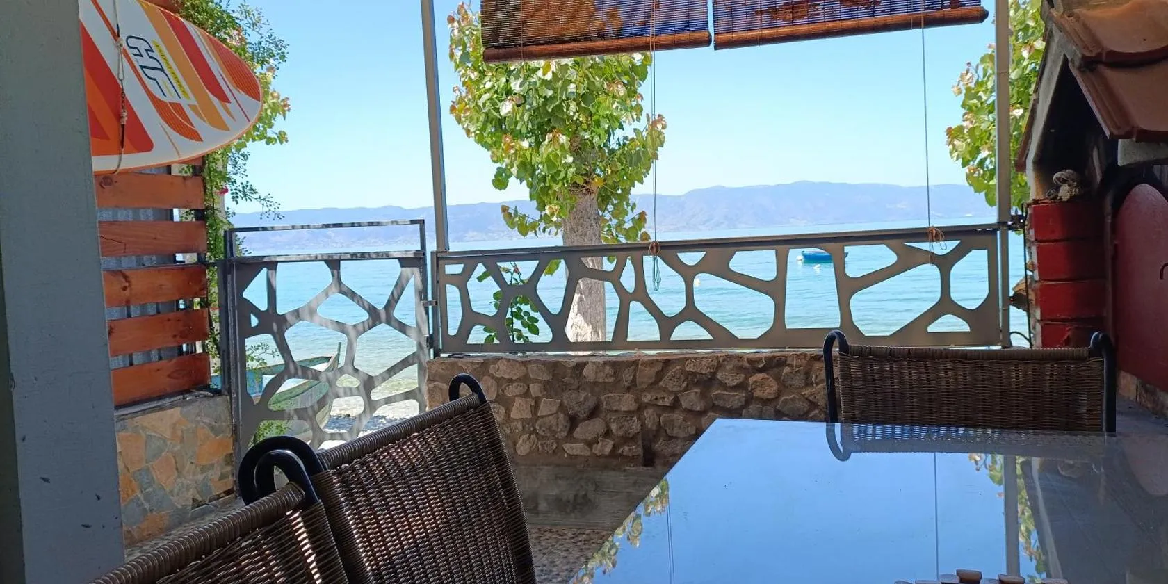 It was great stay at Ochrid lake. The family owning the apartaments is wonderful! Very friendly, hospitable and helpful. The apartment was new and very clean, with small kitchenette and bathroom. We could also use a shared kitchen. There was a terrace with chairs and table were we could have breakfast or sit in the evening, which was really nice. The beach is about 500meters away and you have to go down (and up on the way back), but like everywhere in Trpejca. There are restaurants on the beach. The shop is even closer than the beach, so all what you need is in a walking distance. I really recommend this place. There is no lake view, but you have a view to the village and the mountains. And it is really nice place to stay. Also Trpejca has a very nice summer atmosphere, it is a small village, but even in August it wasn't very crowded.