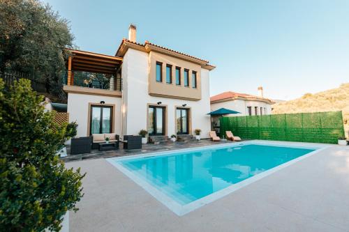 Elegant Accommodation: PELIONBLUE VILLAs in Volos offers a villa with a swimming pool, sun terrace, and lush garden. Guests enjoy free WiFi, ensuring connectivity during their stay.
