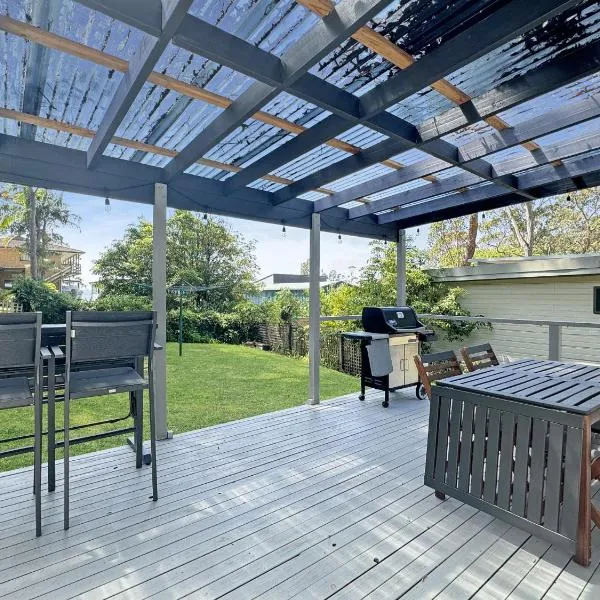Set in Broulee in the New South Wales region, Cosy Getaway with Fireplace and Spacious Backyard has a patio. Both free WiFi and parking on-site are available at the holiday home free of charge.